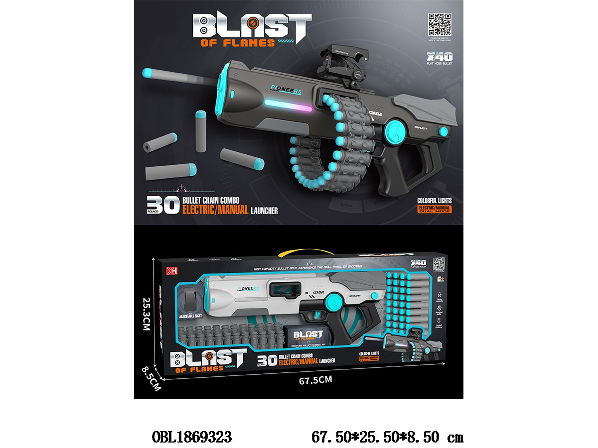 Hand to body electric EVA soft bullet gun set with USB cable, 7.4V lithium battery pack, 2-color mixed packaging