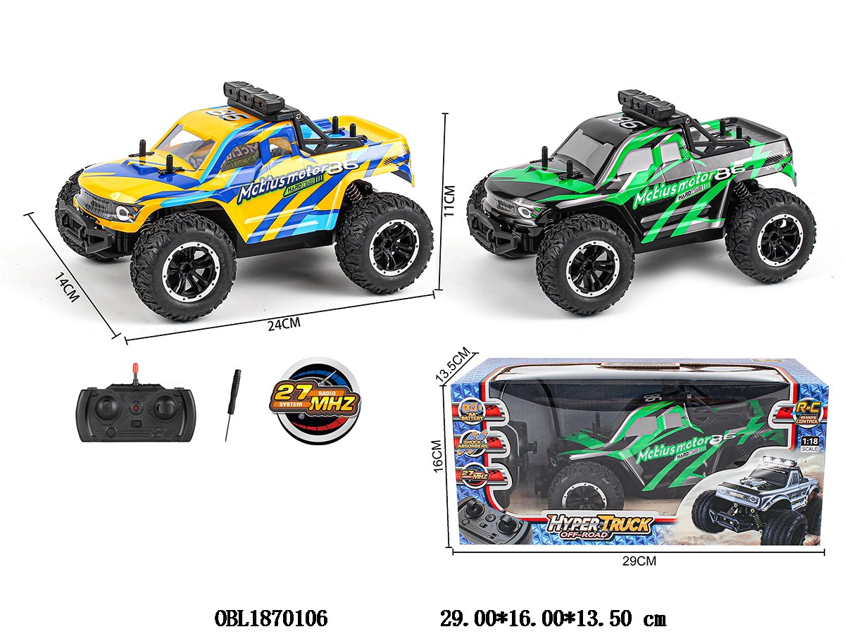 Home > R/C Car > 1: 18 four-way remote control car with lights, body 4 * AA, no electricity included, remote control 2 * AAA, no electricity included, 27 frequency, 2 color mixed design