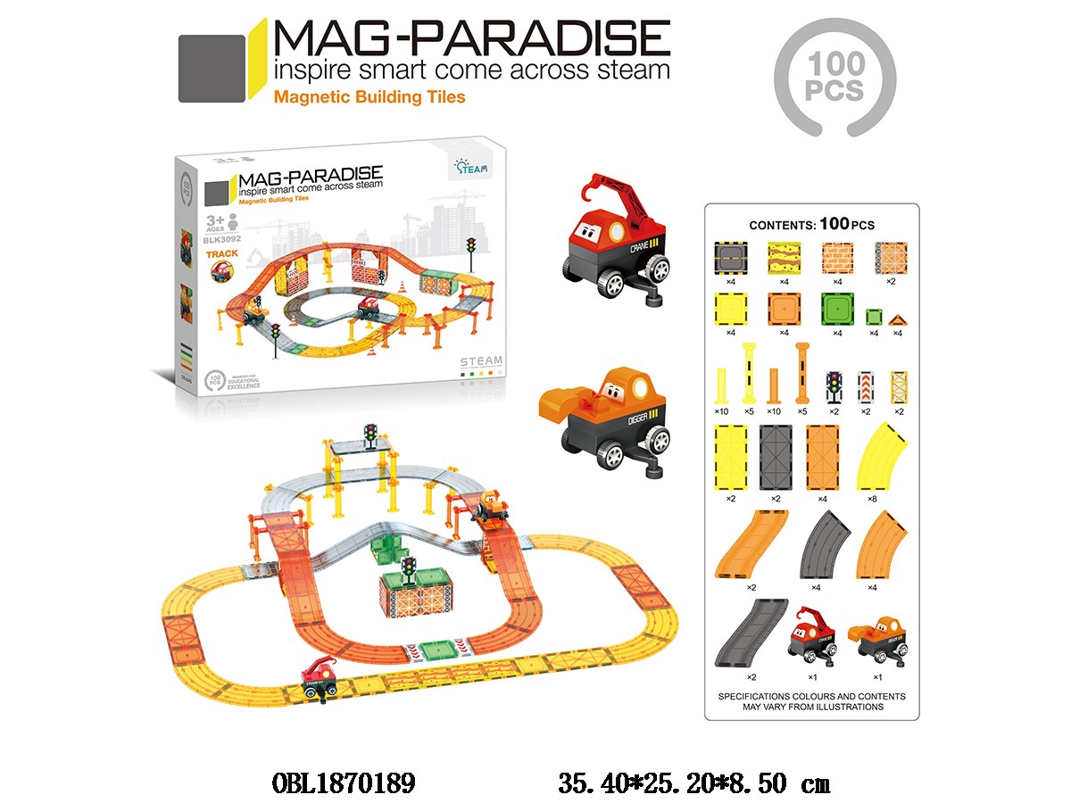 Puzzle Magnetic Block Engineering Rail Car 100PCS Electric Car 2 pieces each 1 * AA without electricity included