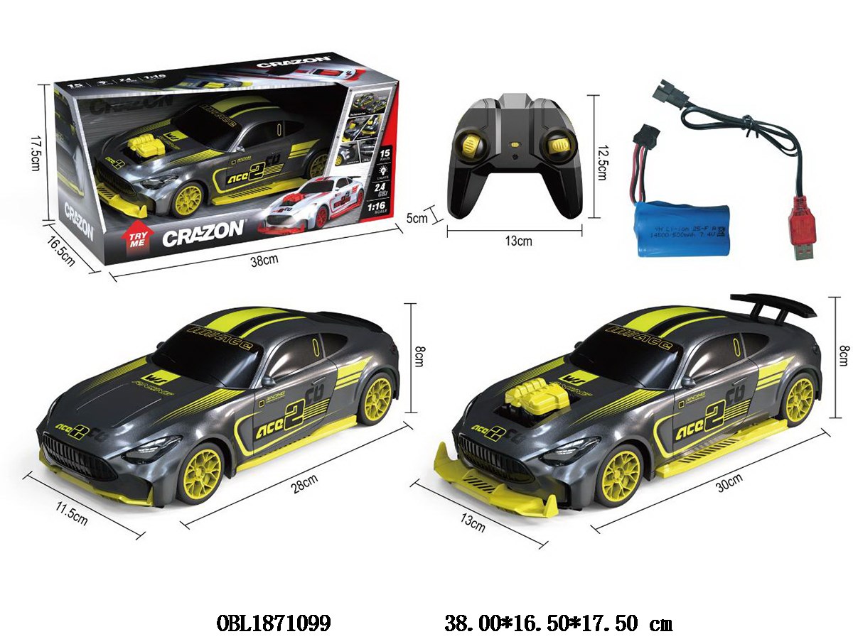 Remote control modified car with lights and USB cable. 7.4V lithium battery with built-in remote control 2 * AA without built-in power. 2.4G frequency