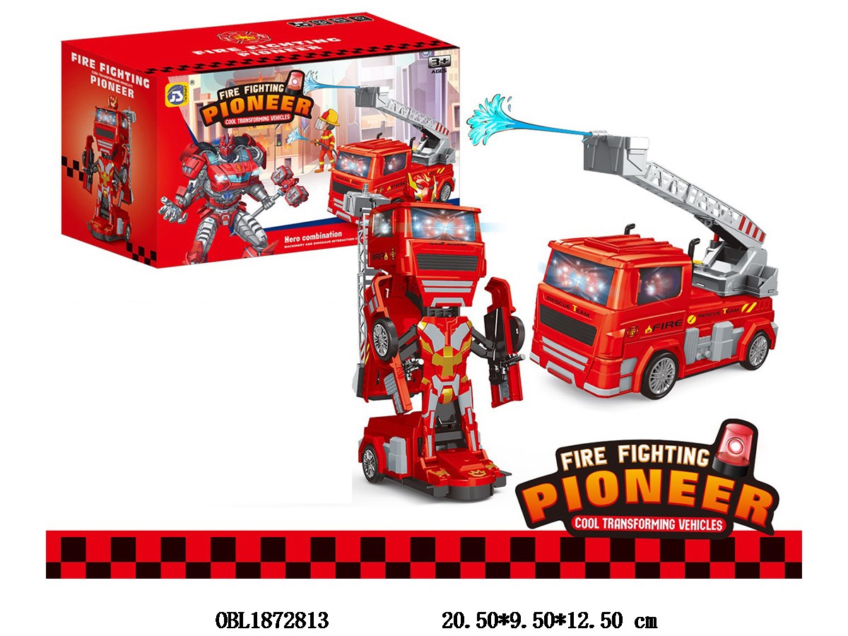 Home > B/O Car > Electric transformable fire truck with lighting, music, 3 * AA, no power included