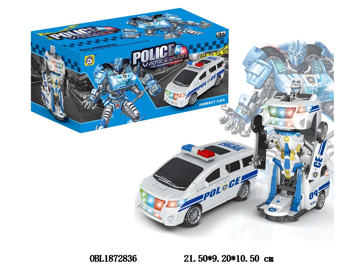 Home > B/O Car > Electric universal deformation police car with lights, music, 3 * AA, no power included