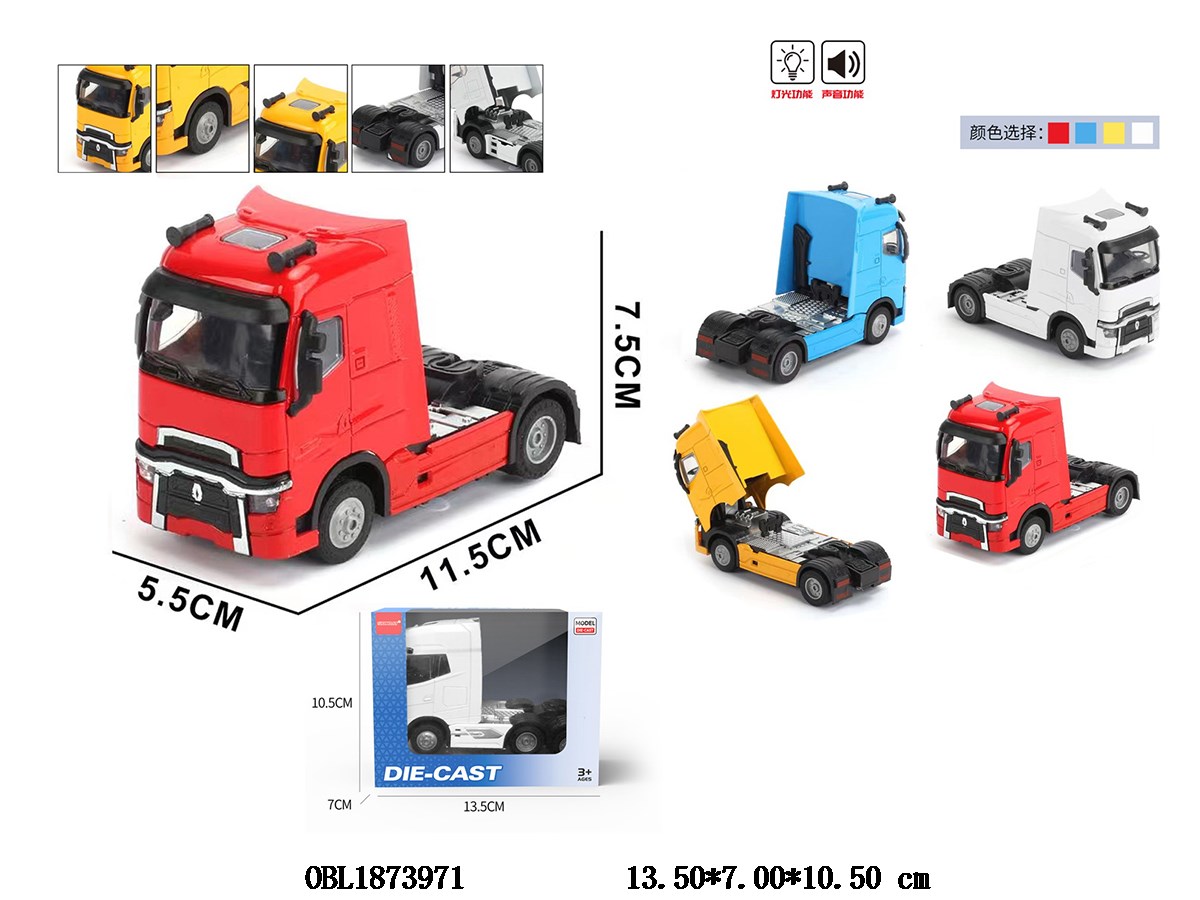 Home > Die-Cast Car > Huili alloy tractor truck with lights, music, 3 * AG13, electric package, 4-color mixed design