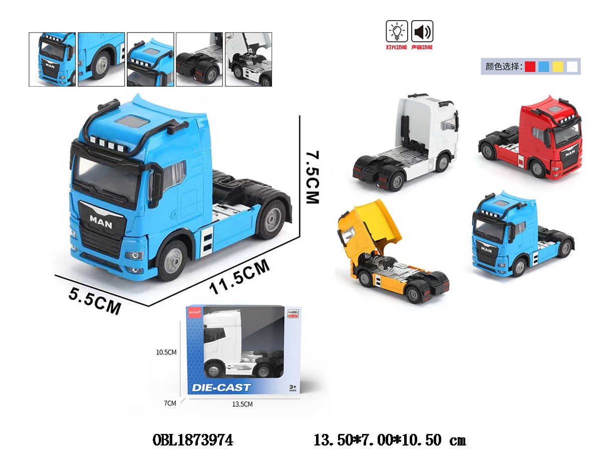 Home > Die-Cast Car > Huili alloy tractor truck with lights, music, 3 * AG13, electric package, 4-color mixed design