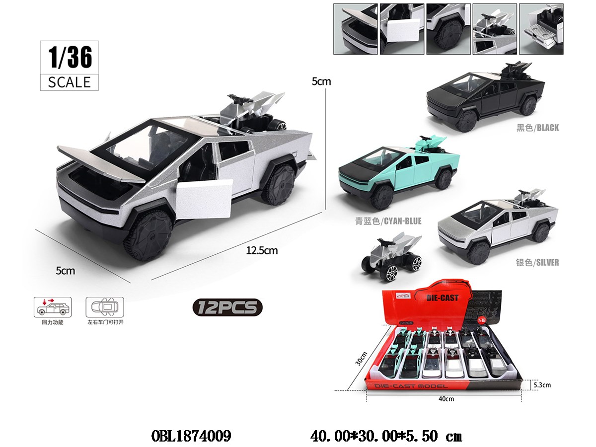 Home > Die-Cast Car > 1: 36 turn alloy pickup truck with motorcycle door opening, 3 colors mixed, 12 pieces per display box