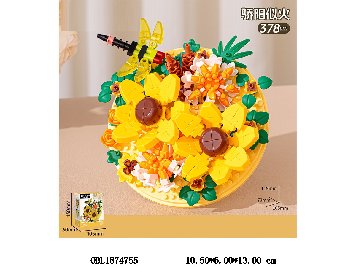 Chinese and English versions of puzzle building blocks flower plate, scorching sun like fire 378PCS