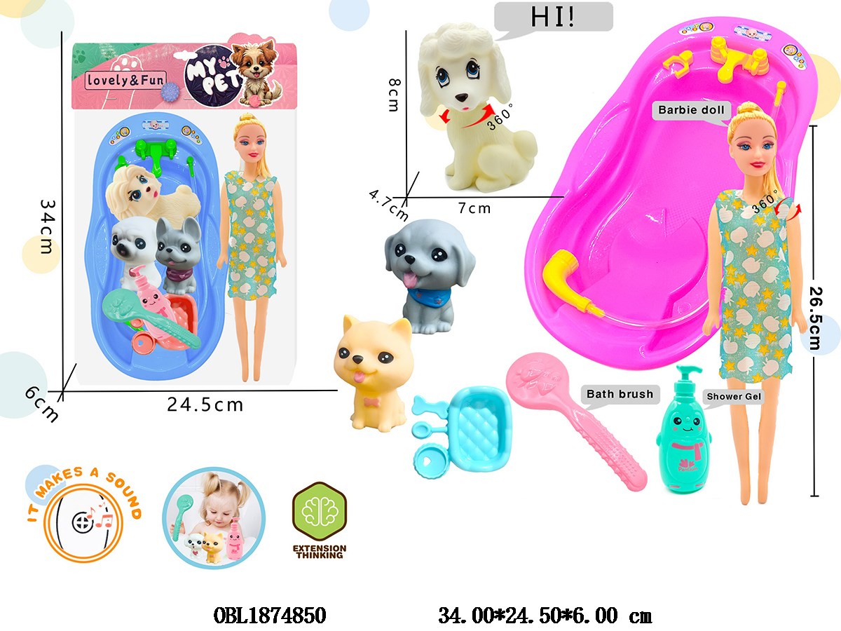 11 inch empty body Barbie set with bathroom water play and vinyl toy