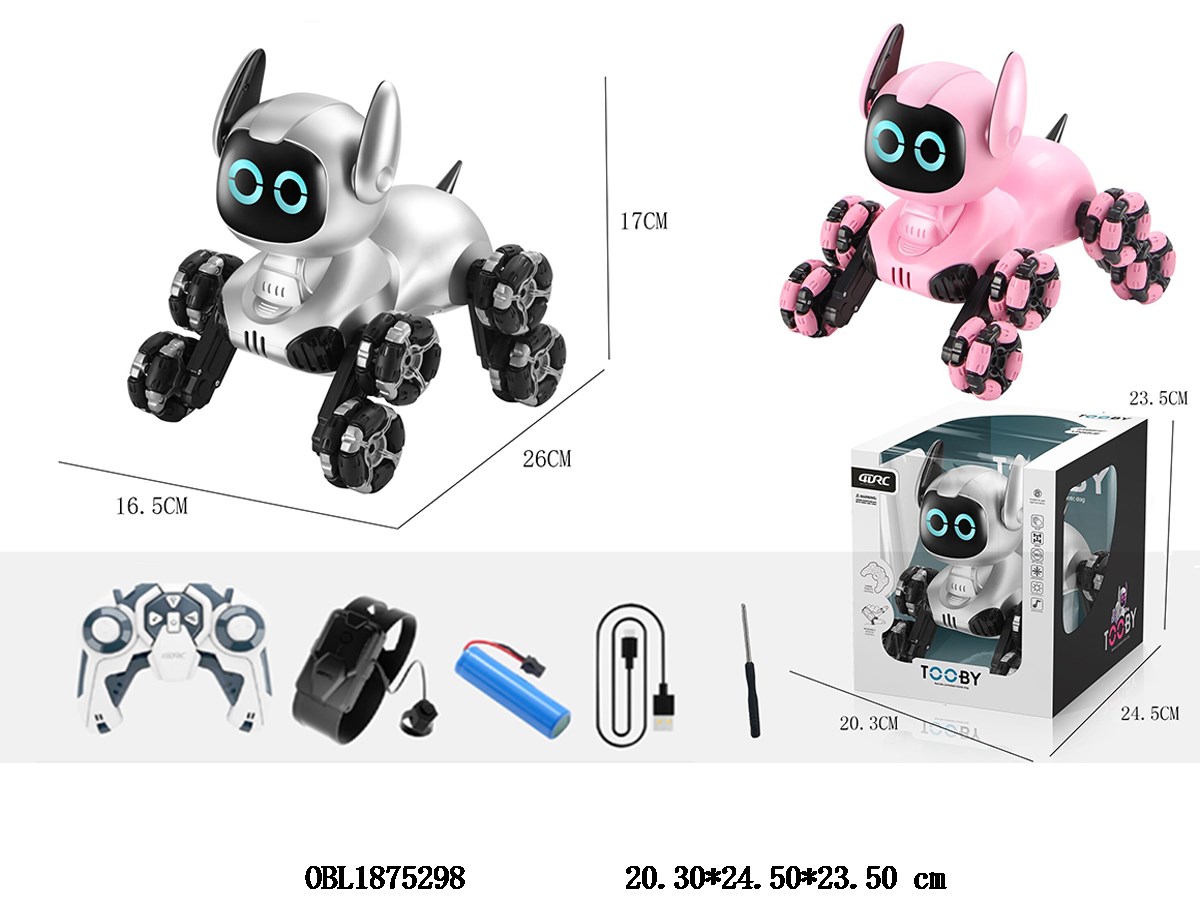 Home > R/C Animals > Spray painted dual-mode eight way eight wheel remote control machine dog with lighting, music drift, head touch sensing, equipped with USB cable main body 3.7V battery pack remote control 2 * AA non battery pack watch 2 * AAA non battery pack 2.4G frequency 2-color mixed packaging