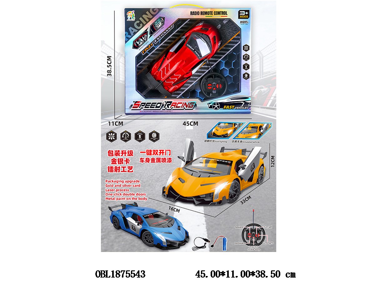 Home > R/C Car > Five way remote control car with lights, one click door opening with USB cable, body 3.7V rechargeable battery included remote control 2 * AA, not included, 49 frequency, 3-color hybrid