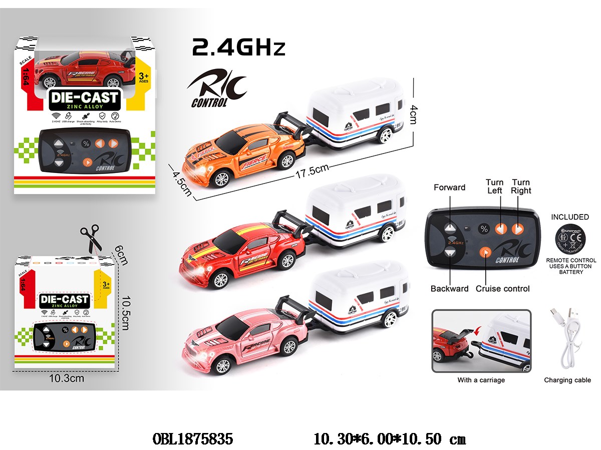 1: 64 Five Way Alloy Remote Control Car with Lighting, Car Compartment with USB Cable, Car Sound 3.7V Lithium Battery Powered Remote Control 1 * CR2032 Powered 2.4G Frequency, 3-Color Hybrid