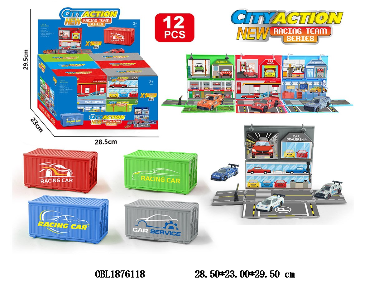 1: 64 alloy sliding car with container storage box, 4 colors, 6 mixed types, 12 small boxes, 1 display box