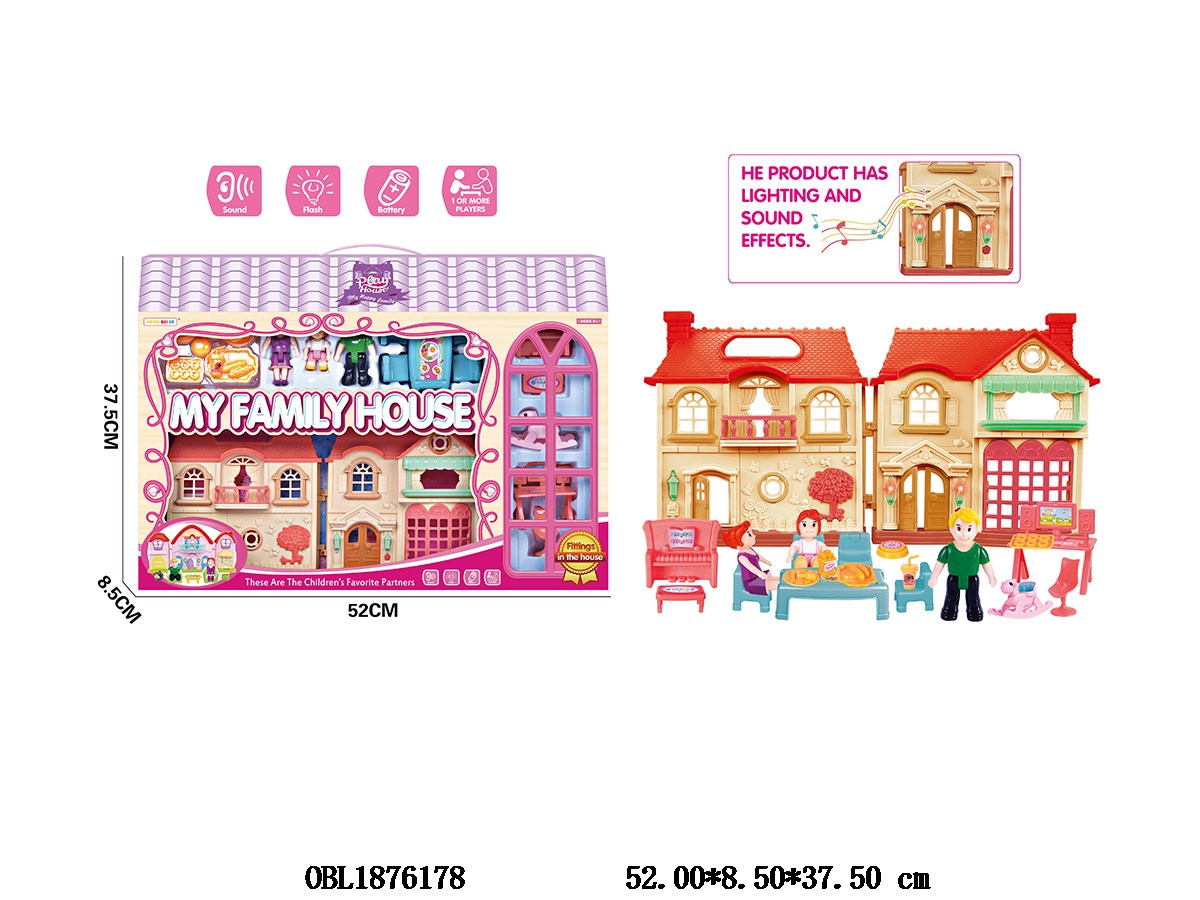 Home > Villa Set > Villa set with 3 dolls with lights, doorbell 3 * AG13, and electricity included
