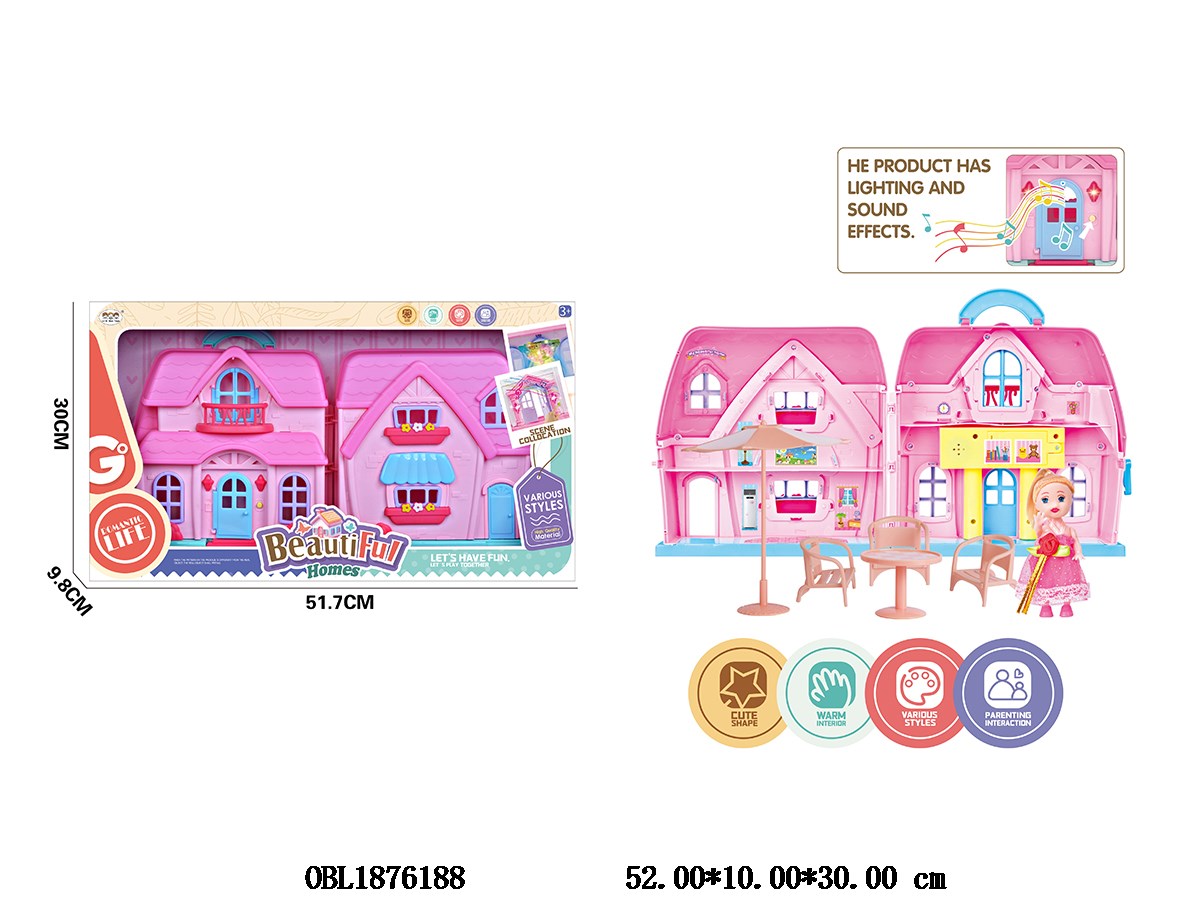 Villa set with 1 3.5-inch solid body Barbie with light doorbell 2 * AA, no electricity included