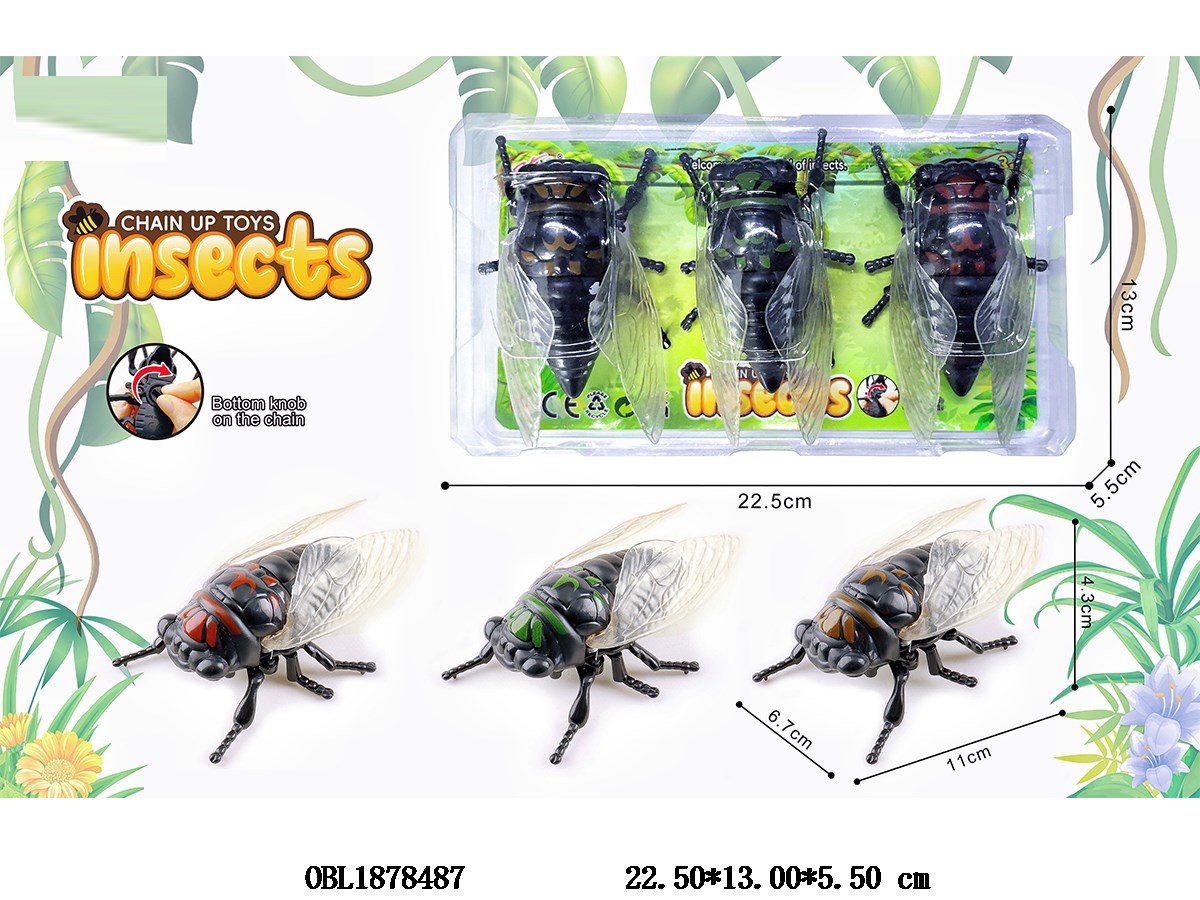 Home > Wind Up Animal > 3 pieces with chain wound spring, summer cicada, cicada, and 3 colors mixed