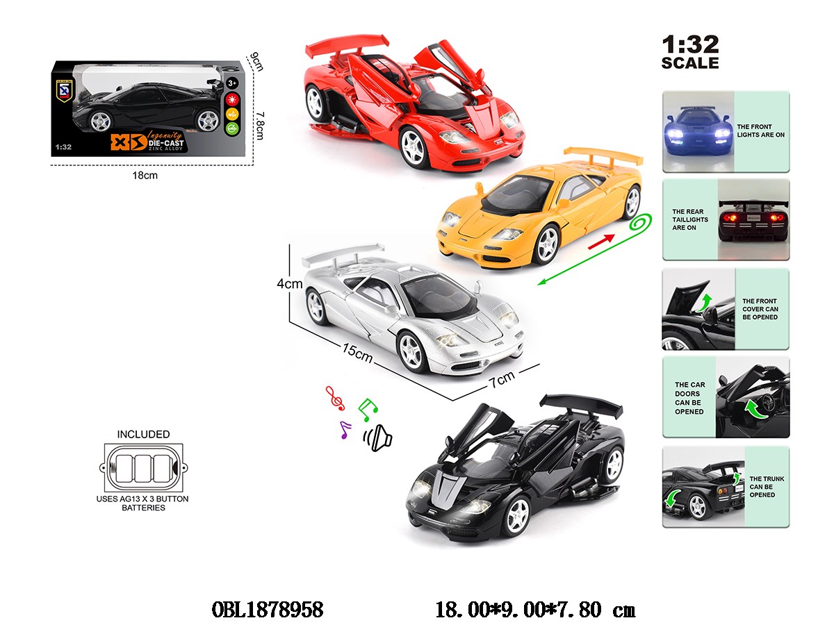 1: 32 zinc alloy regenerative car with light and sound, capable of opening doors, 3 * AG13 package, electric, 4-color mixed design