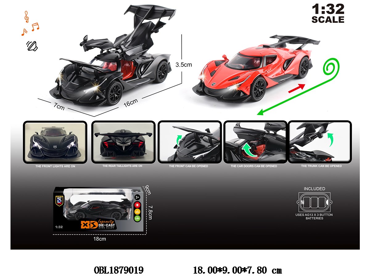 1: 32 zinc alloy regenerative car with light and sound, capable of opening doors, 3 * AG13 electric package, 2-color mixed design
