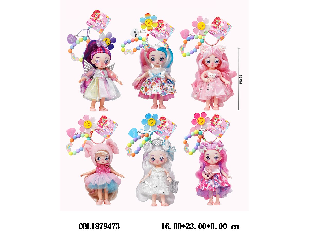 6-inch physical activity joint elf Barbie with keychain main body clothing, 1 color, 6 mixed styles