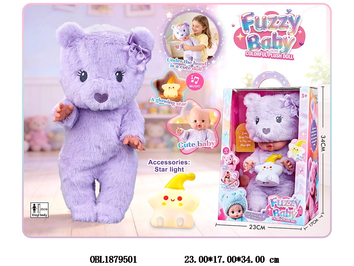 Home > Barbie With IC > 14 inch pullover plush doll with music IC night light 3 * AG13 electric package main body clothes 1 style 1 color