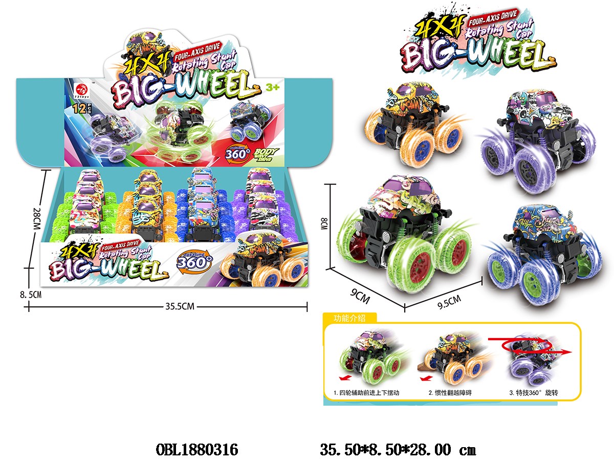 Inertial car, 4 models, 4 colors mixed, 12 pieces per display box