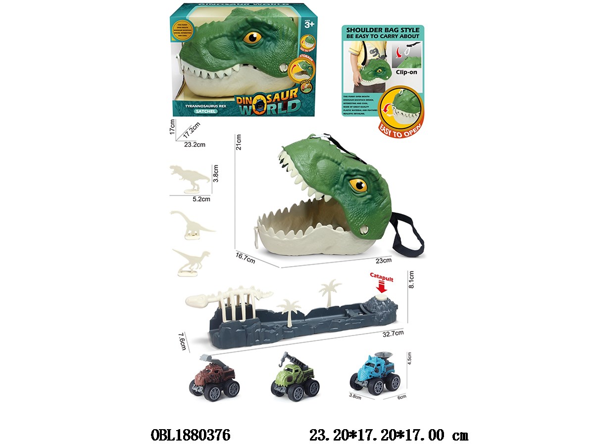 Home > Free Wheel Car > Sliding catapult dinosaur storage bag set with 3 sliding carts