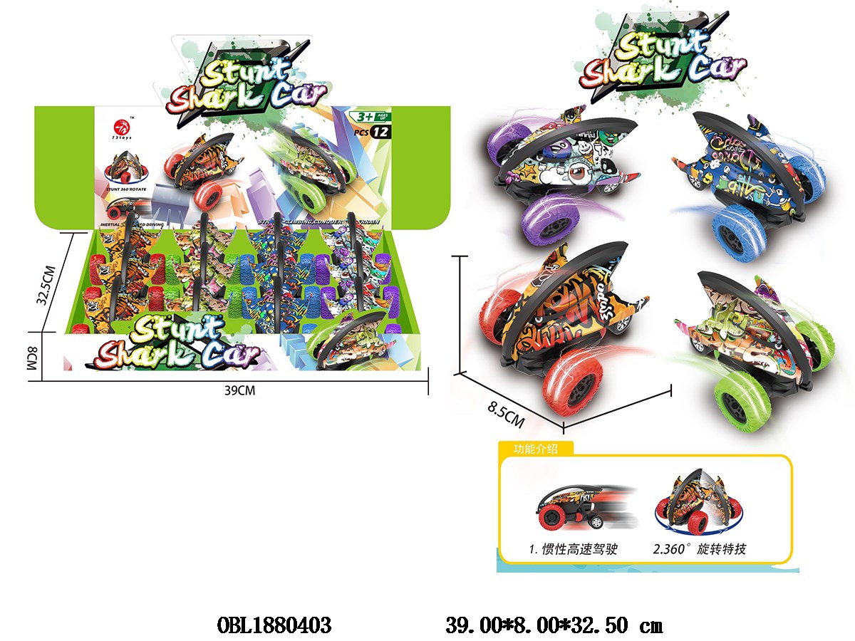 Inertial stunt car with 4-color mixed packaging, 12 pieces per display box