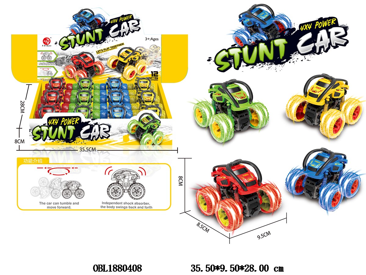 Inertial tipping stunt car, 4-color mixed packaging, 12 pieces per display box