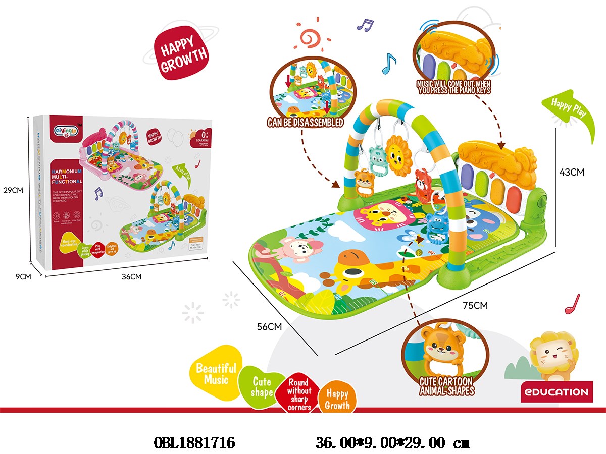 Wheat straw material baby pedal piano with music 3 * AA, no electricity included