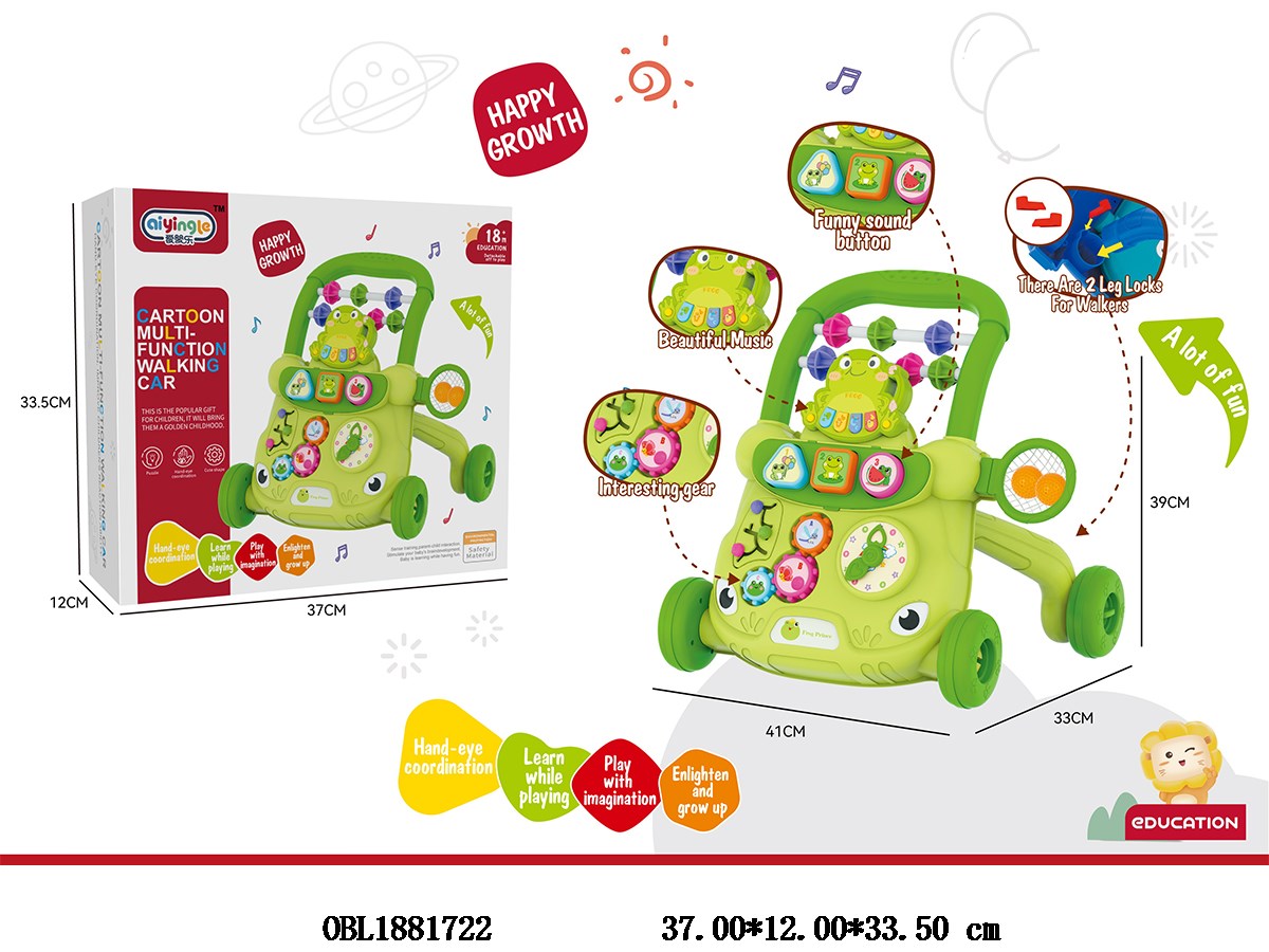 Baby walking cart with music box, water tank 2 * AAA, no electricity included