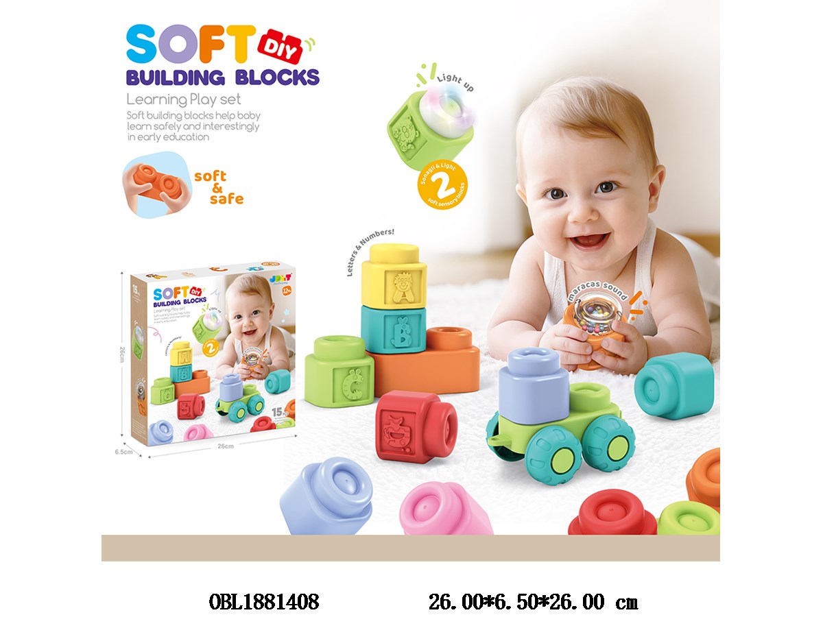 Home > Common Building Blocks > 2 puzzle soft rubber building blocks with lights, 3 * AG3 each, including electricity 15PCS