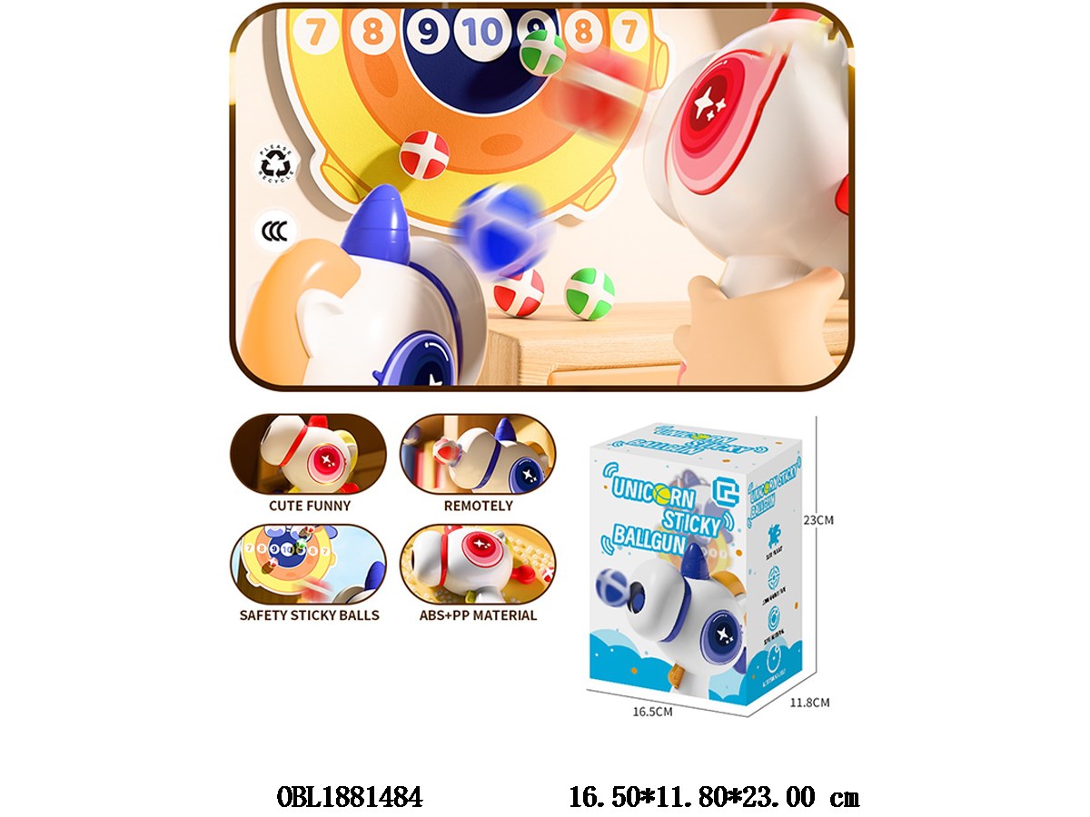 Unicorn Sticky Target Ball Gun, 2 colors mixed, 1 gun, 1 target, 6 balls