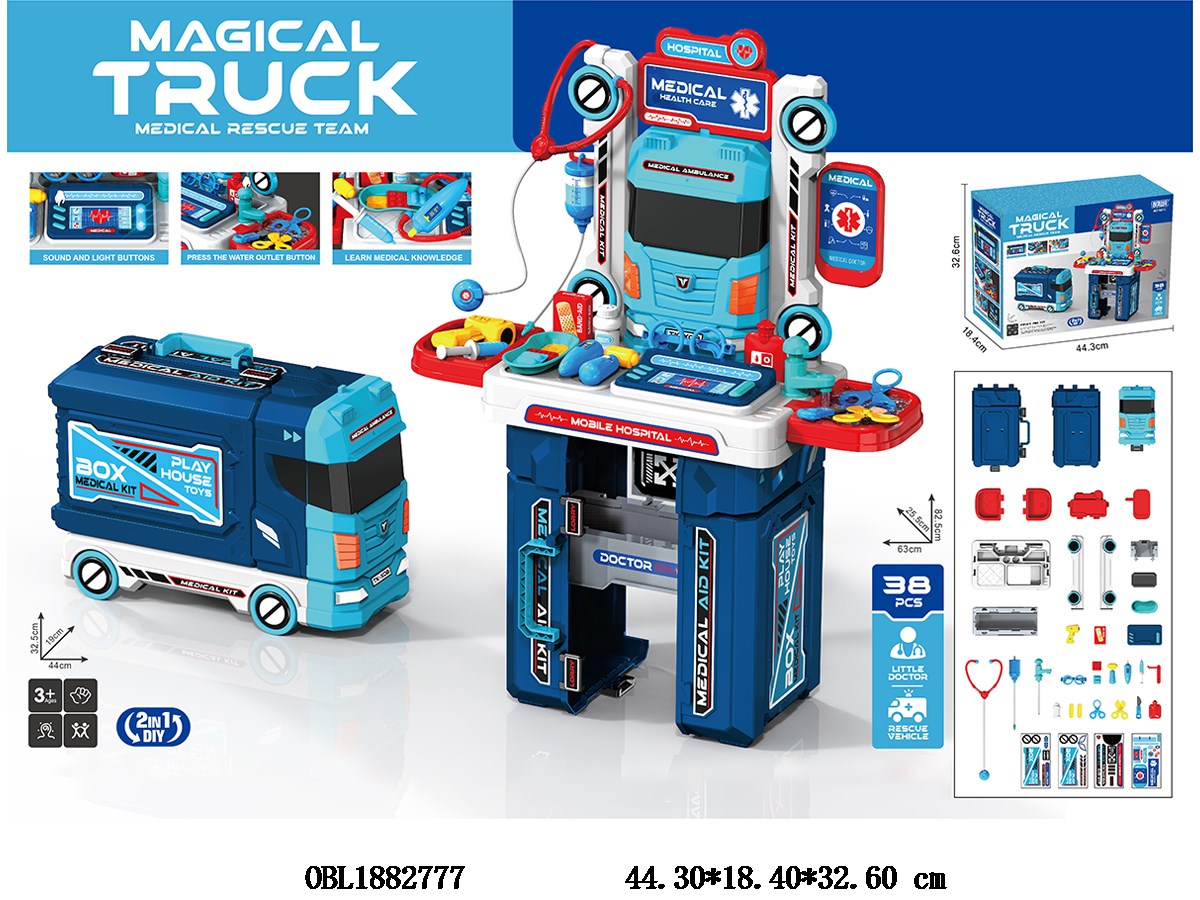 Home > Medical Sets > 2-in-1 medical equipment set/truck set 3 * AAA without electricity 2 * AG13/LR44 with electricity included