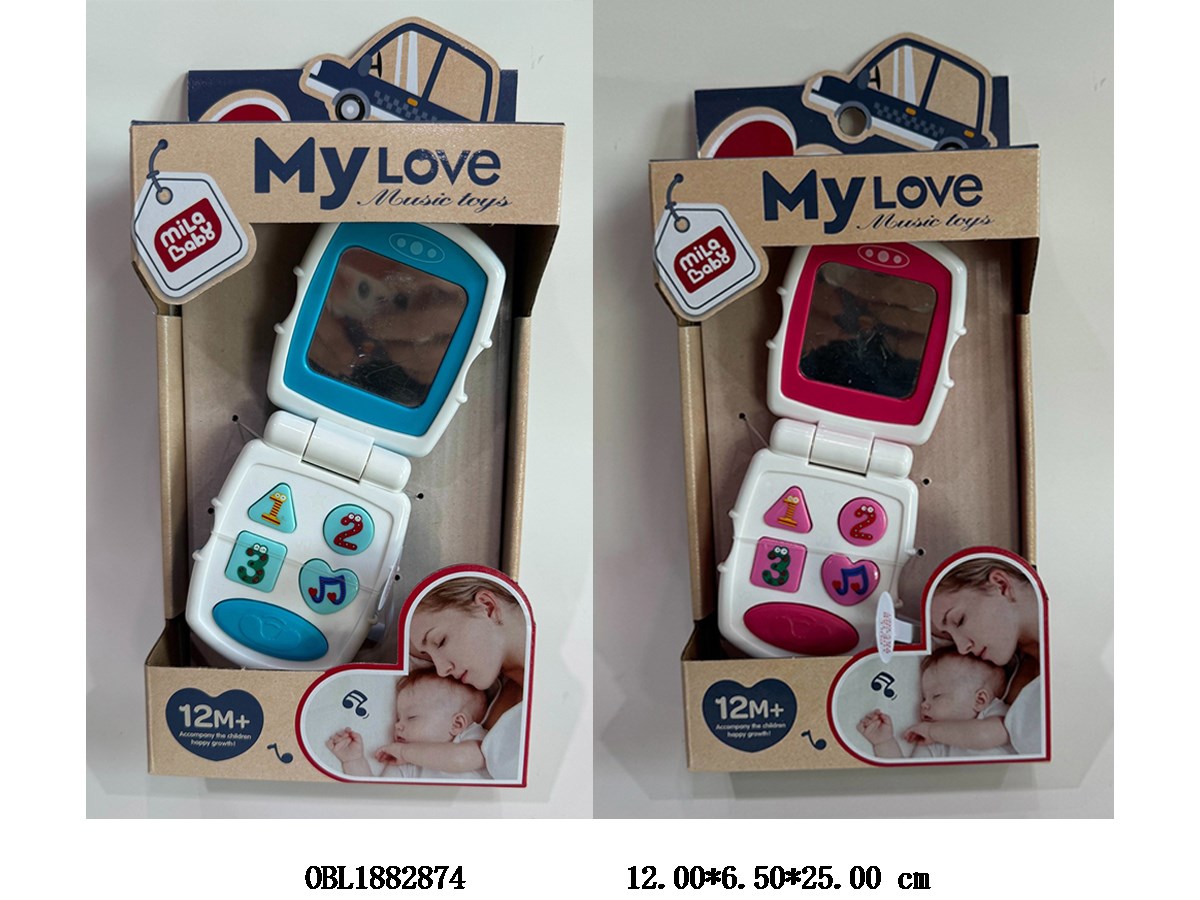 Flip phone with light, music, 2 * AAA battery pack, blue/red color