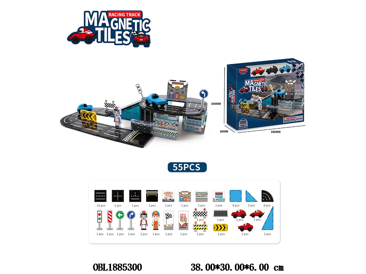 Puzzle Magnetic Block 55PCS 3 Sliding Cars