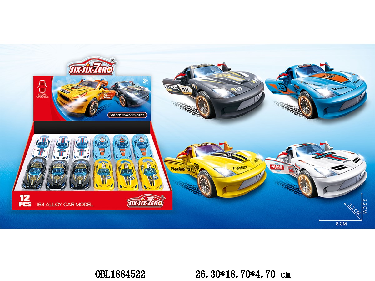 Alloy sliding sports car can open the door, 4 colors mixed, 12 pieces in 1 display box
