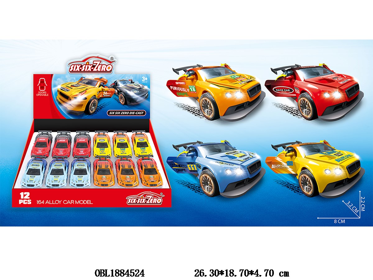 Alloy sliding sports car can open the door, 4 colors mixed, 12 pieces in 1 display box