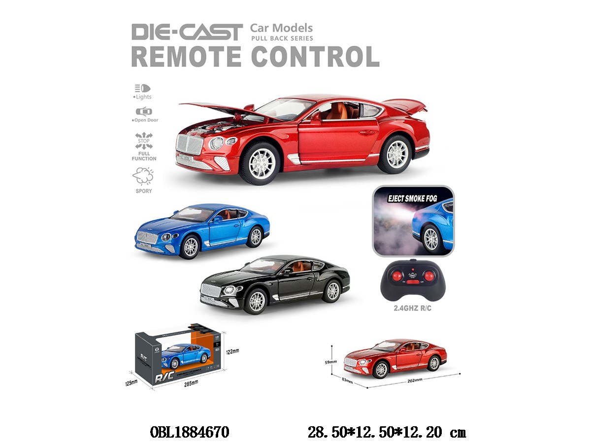 Home > R/C Car > 1: 22 remote control alloy car with light spray can open the door with USB cable body 3.7V electric remote control 2 * AA non electric 2.4G three color mixed