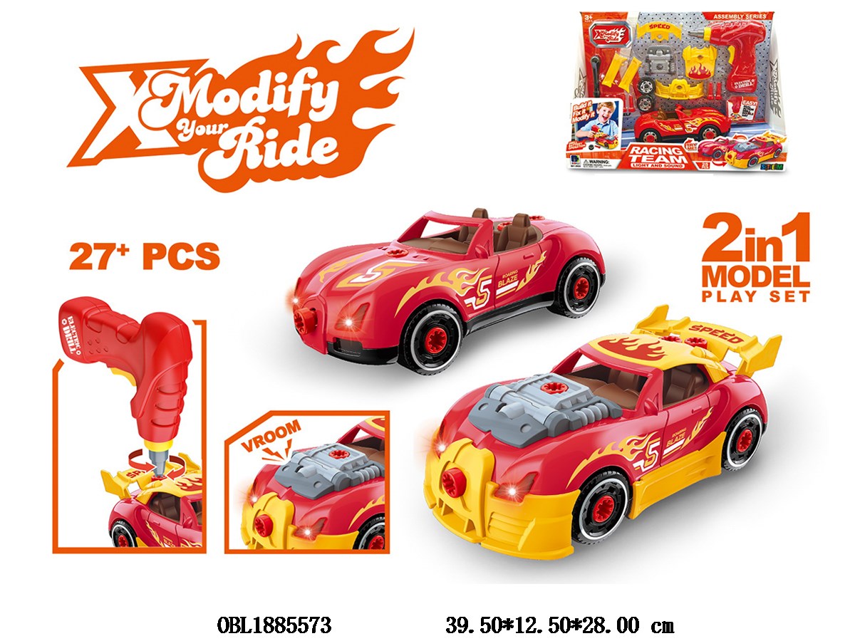 2-in-1 disassembly and assembly car with lights and sound 2 * AG13, including electric drill 2 * AA, not including electricity