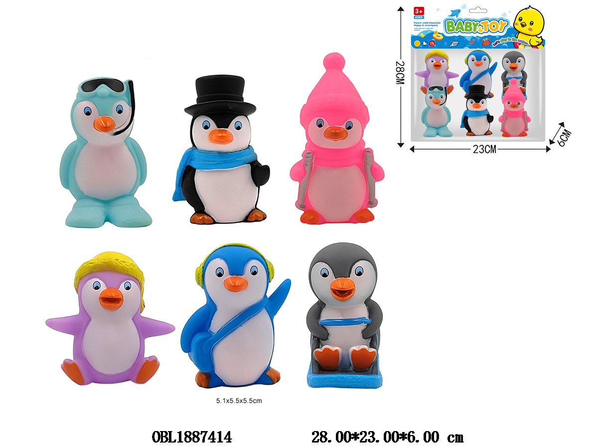 Home > Soft Plastic Animals > 6 sets of vinyl penguins with BB whistle