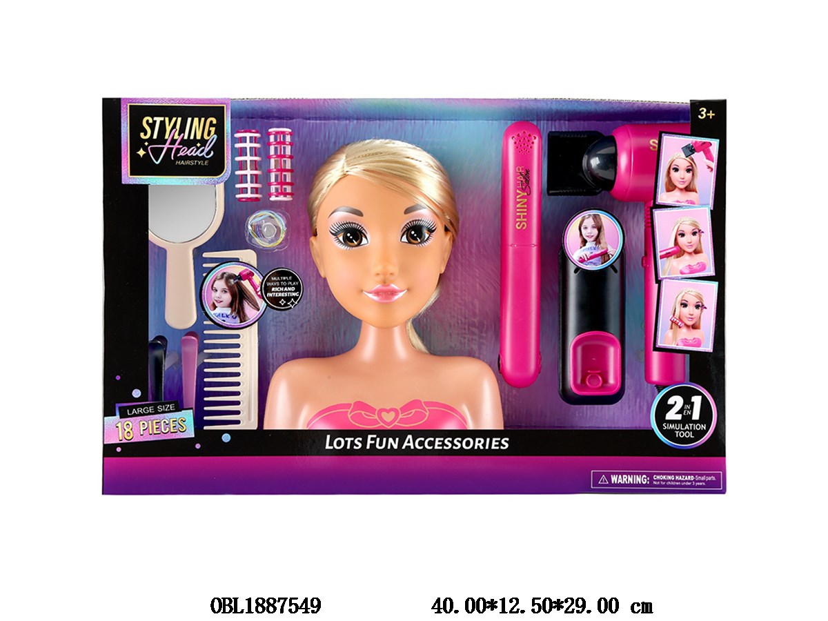 Brown skin half body model doll set, straight hair stick/hair dryer, total 5 AAA, no electricity included