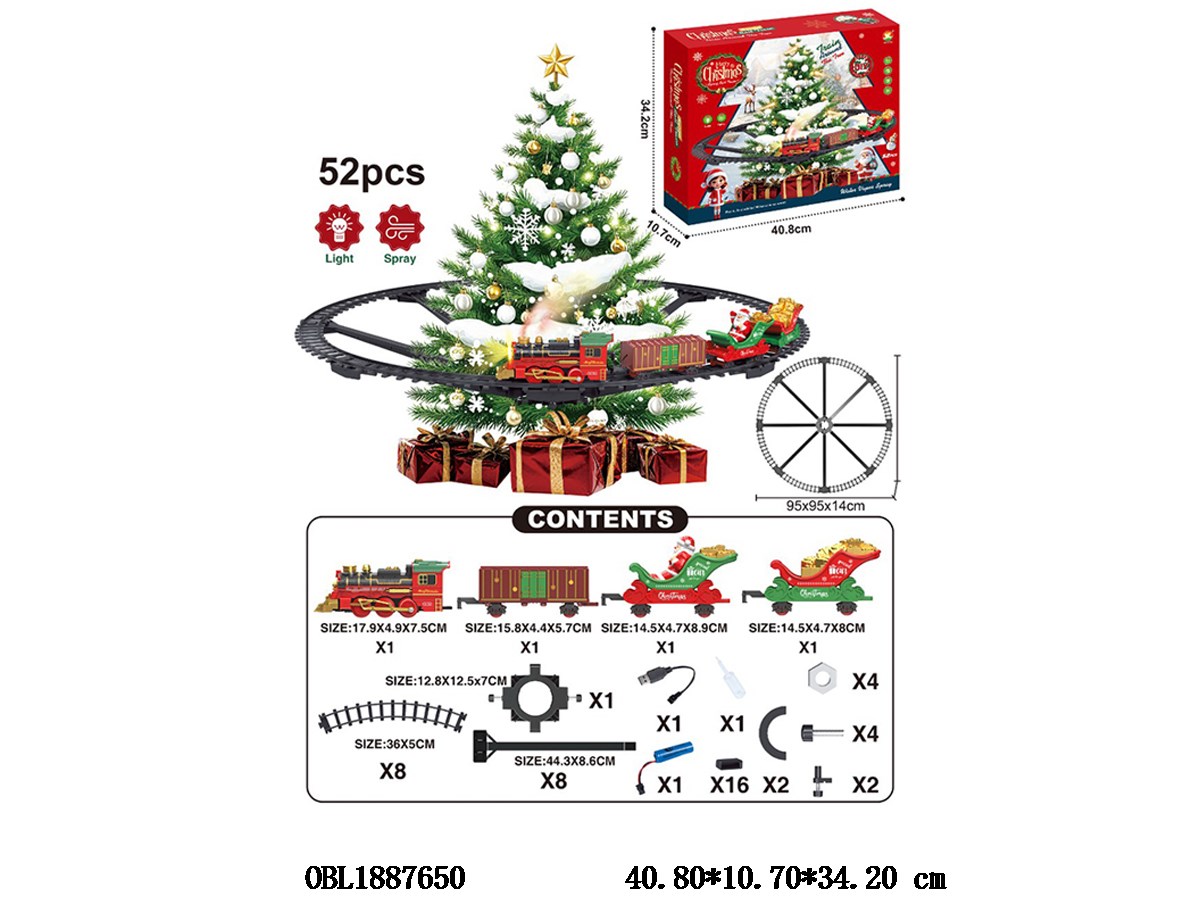Home > B/O Railcar > Christmas electric rail train set with lights and sound, equipped with USB cable and 3.7V lithium battery pack
