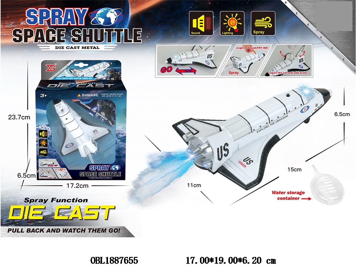 Home > Die-Cast Plane > Alloy rebound shuttle with light and sound spray 2 * AAA without electricity