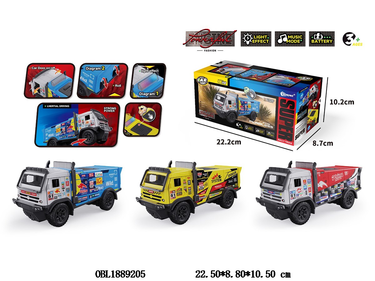 Inertial car with lighting and sound 3 * AG13, including electricity and 3 colors mixed