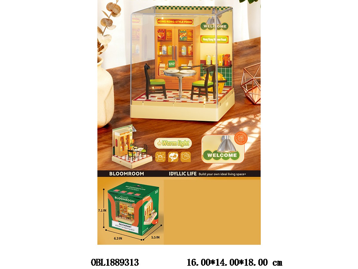 DIY scene assembly night cat stir fry shop set with lighting 2 * AAA, no electricity included