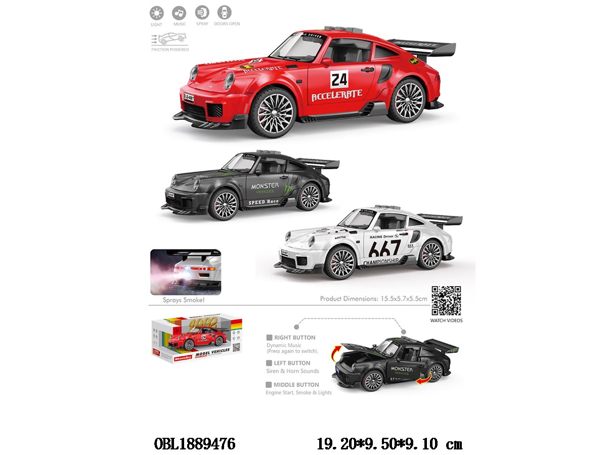 Inertia simulation vehicle with light, music and spray can open the door 2 * AAA, non electric, mixed with three colors