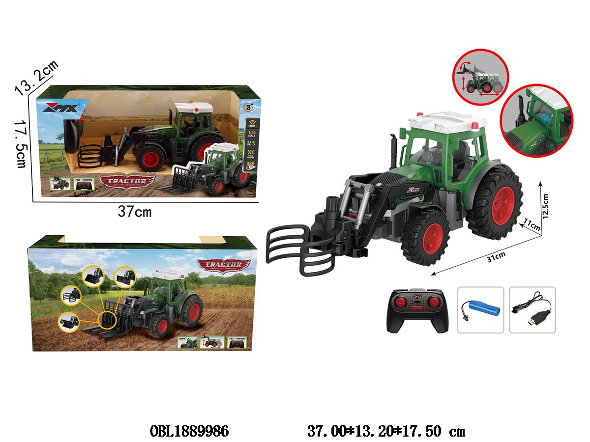Six way remote control farmer s car with lights and USB cable. Body 3.7V lithium battery with power included remote control 2 * AA without power included 2.4G frequency