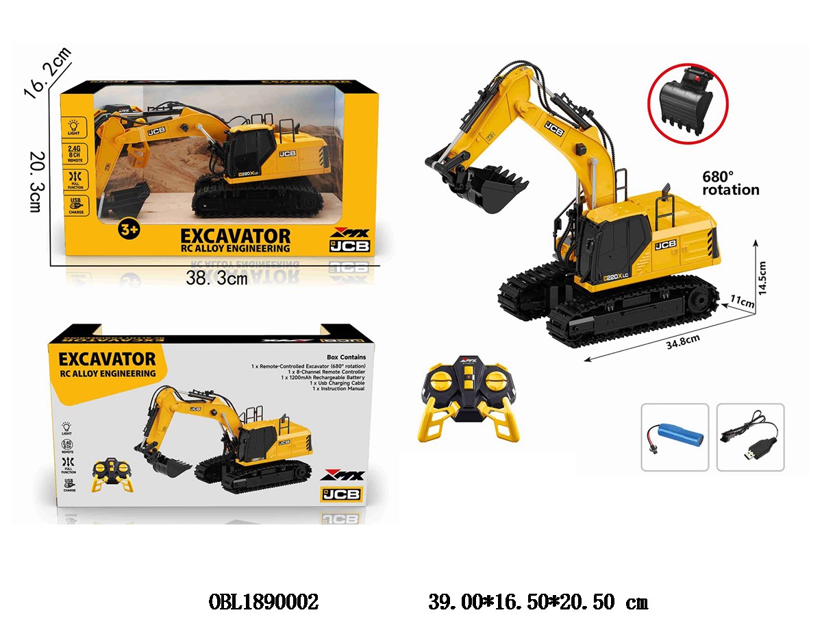 8-way remote control alloy crawler excavator with lights and USB cable, body 3.7V lithium battery with power included remote control 2 * AA without power included, 2.4G frequency