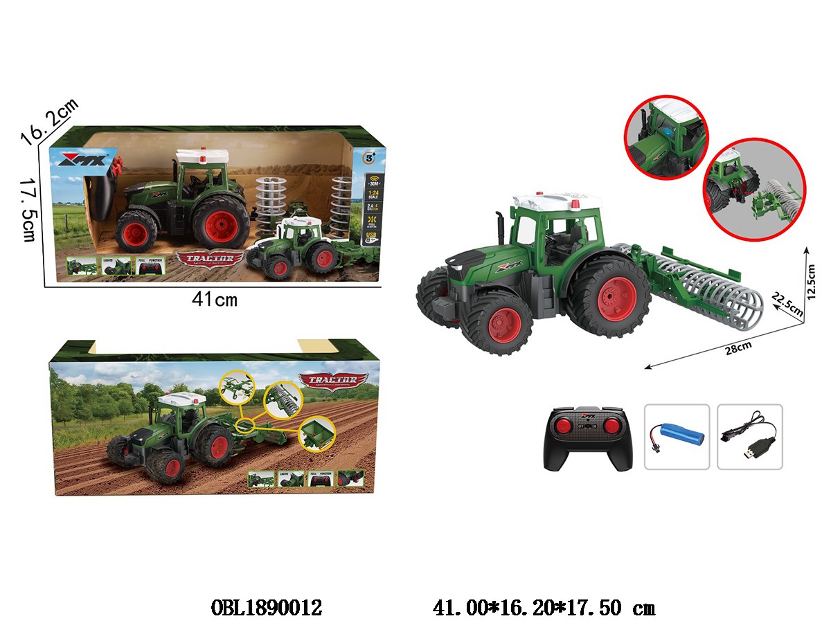 Four way remote control farmer s car with lights and USB cable. Body 3.7V lithium battery with power included remote control 2 * AA without power included 2.4G frequency