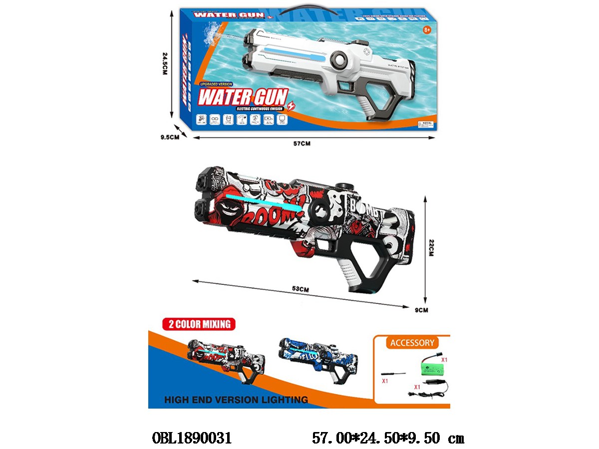 High end pulse electric self-priming water gun set with light and USB cable 7.4V power package, mixed with 2 colors