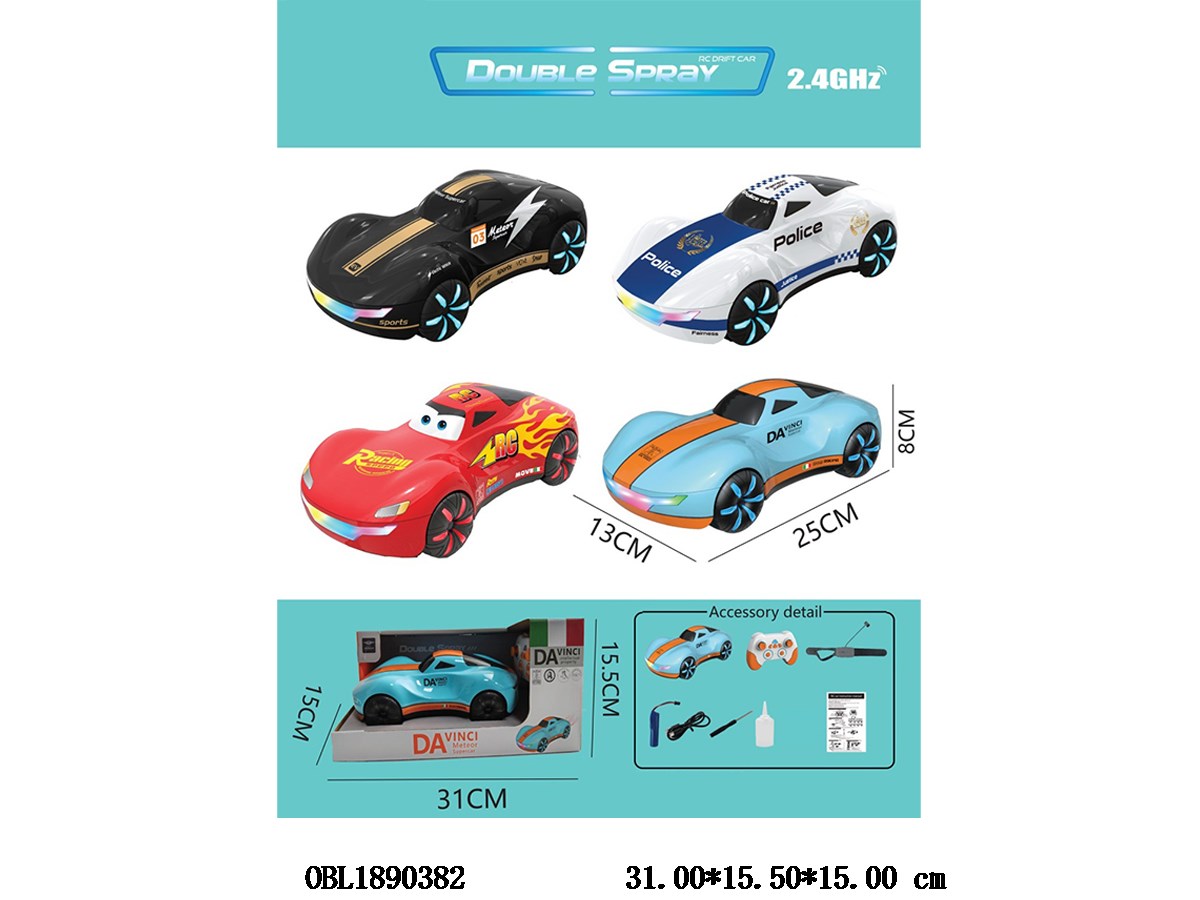 Dual remote control 9-way simulation new energy racing car with light spray with USB cable Body 3.7V electric remote control 2 * AA electric watch 2 * AAA electric 2.4G mixed
