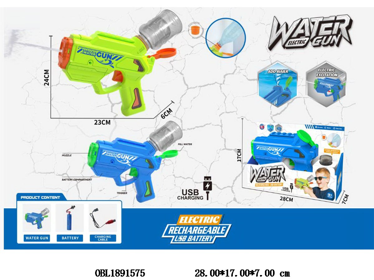 Electric water gun can be connected to a 300ml Coca Cola bottle with USB cable, 3.7V lithium battery pack, 2-color hybrid